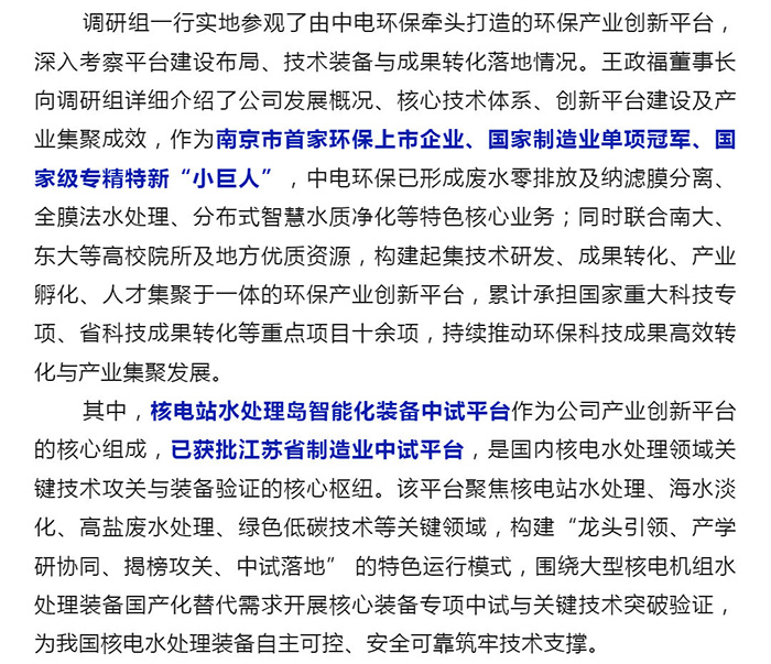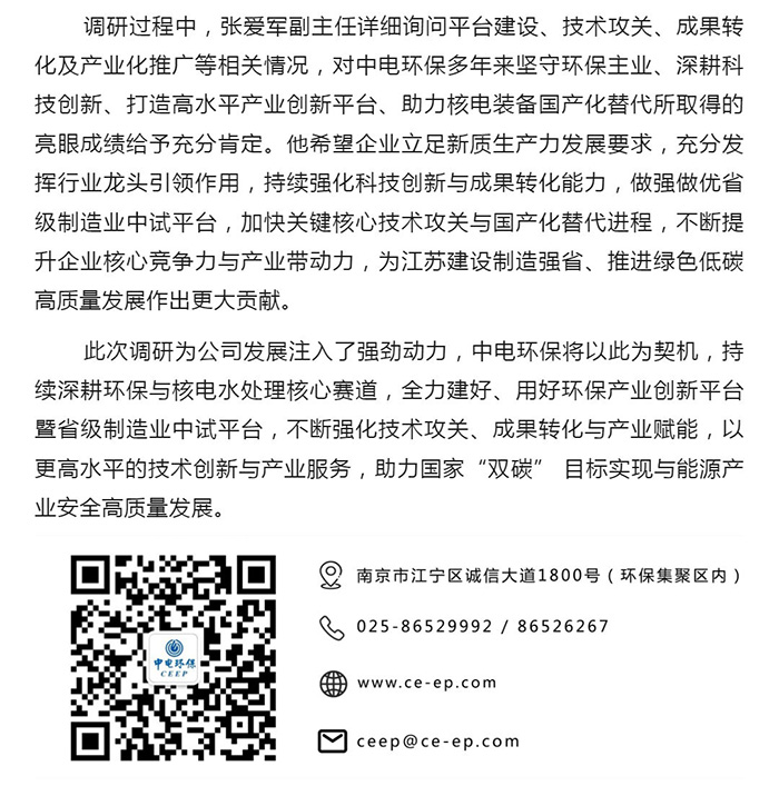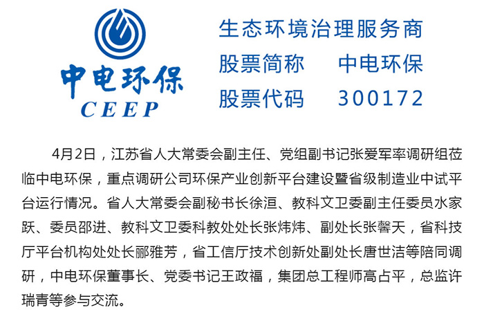 中電環(huán)保股份有限公司是南京市首家環(huán)保上市公司(股票簡(jiǎn)稱(chēng):中電環(huán)保,股票代碼:300172),南京環(huán)保產(chǎn)業(yè)協(xié)會(huì)會(huì)長(zhǎng)單位,國(guó)家級(jí)聯(lián)盟理事長(zhǎng)單位,是生態(tài)環(huán)境治理服務(wù)商,主營(yíng)(3+1):水務(wù)、固危廢、煙氣治理及產(chǎn)業(yè)創(chuàng)新平臺(tái),包括:工業(yè)水處理、污水處理及水環(huán)境綜合治理;固危廢土壤、污泥餐廚垃圾處理;煙氣及VOCS治理;智慧環(huán)保;高端裝備等。